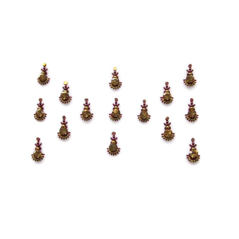 Self adhesive sticker jewelry . Handcrafted by women artisans by decorating the shaped bindis with crystals and fine findings .