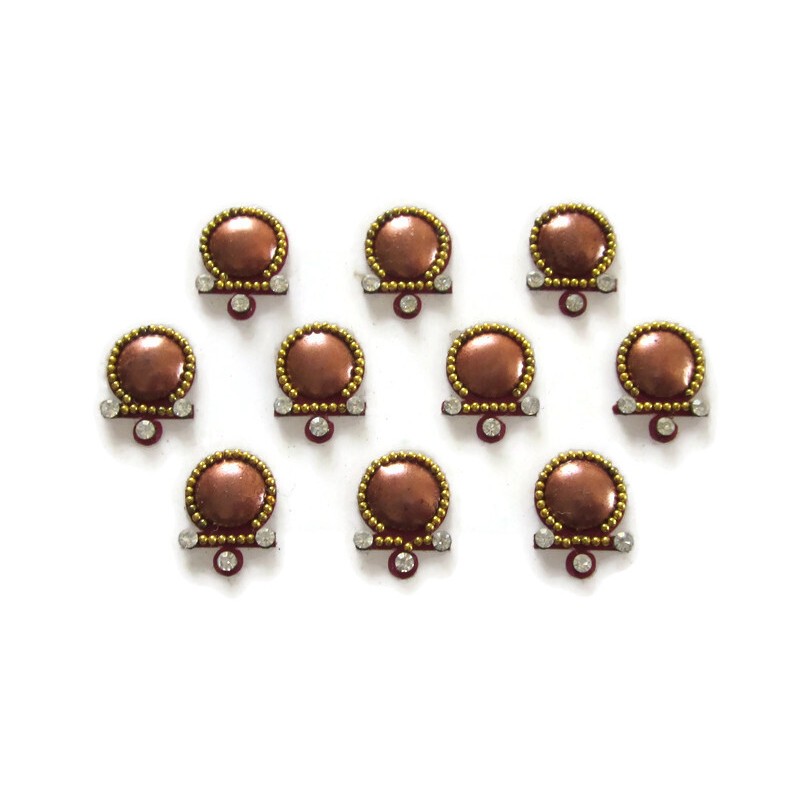 Self adhesive sticker jewelry . Handcrafted by women artisans by decorating the shaped bindis with crystals and fine findings .